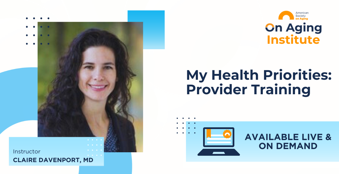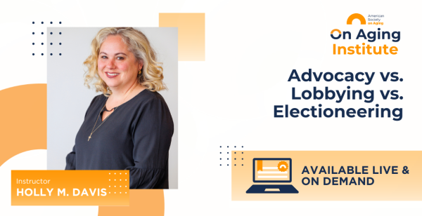 The On Aging Institute is the virtual hub for the educational programs and resources produced by the American Society on Aging. Browse upcoming courses to strengthen your skills and impact in the field of aging.