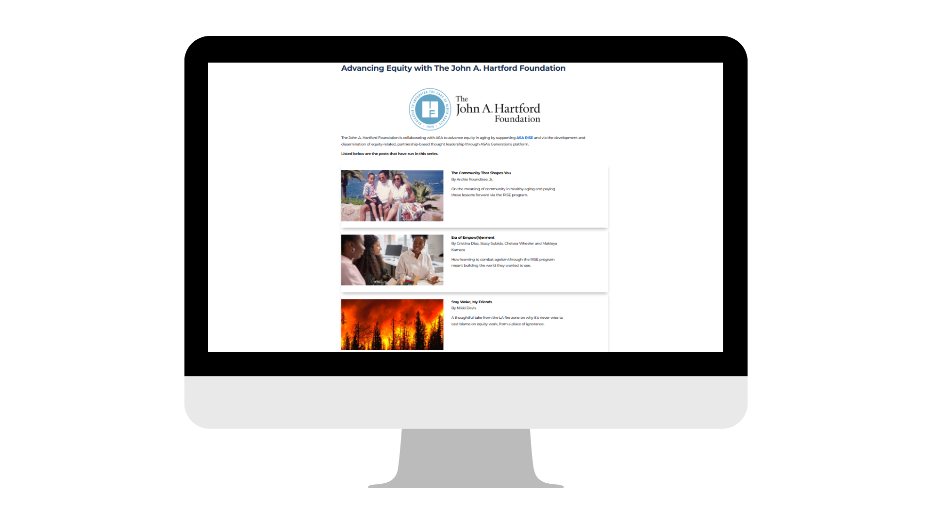 Check out this collection of powerful Generations articles written by ASA RISE Alumni. Supported by The John A. Hartford Foundation, these pieces reflect the impact of ASA RISE and our shared commitment to a more inclusive future for older adults.